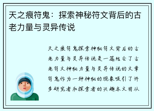 天之痕符鬼:探索神秘符文背后的古老力量与灵异传说